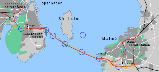 ![]() Across the giant Øresund Bridge (toll EUR 30) ![]()